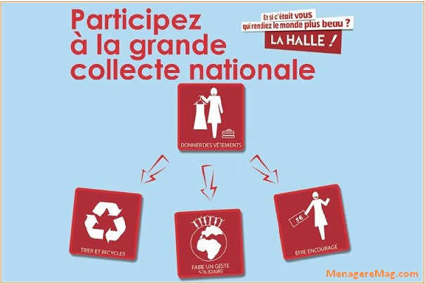 Les magasins de vêtements La Halle réitère leur opération de collecte de vêtements en partenariat avec Le Relais. Jusqu’au 16 décembre 2010, 200 magasins La Halle proposeront ainsi à leurs clients de rapporter leurs vêtements usagés (ou dont ils n’ont plus besoin), lavés et pliés dans un sac.