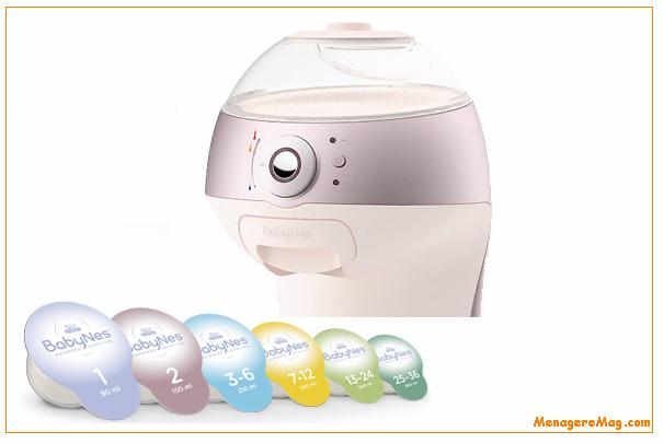 Ce distributeur à lait permet de préparer un biberon en moins d’une minute. La température du lait est adaptable.