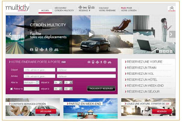 Baptisé Citroën Multicity, le site se veut facile d’accès et complet avec des prix compétitifs. Un service de recherches d’itinéraires permet de trouver, comme le proposent déjà certains sites, le meilleur itinéraire quelque soit le moyen de transport choisi.