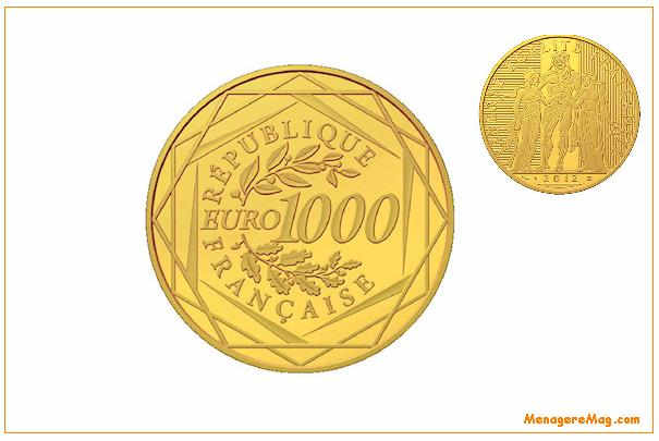 Depuis vendredi 23 mars 2012, la Monnaie de Paris a mis en vente dans ses boutiques et sur internet (sous forme de souscription) une pièce en or d’une valeur faciale de 1.000 € (diamètre : 39 mm – poids : 20 grammes).