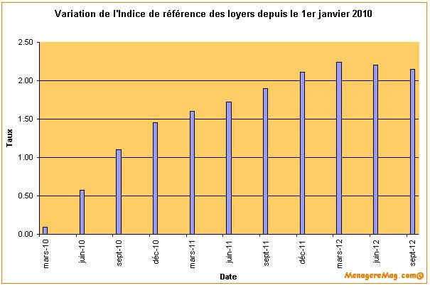 Variation de l’indice de référence des loyers (de 2010 à 2012) :