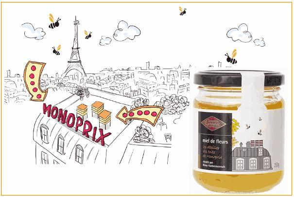 Les magasins Monoprix réitèrent pour la 2e année consécutive la vente de pots de miel issu de la production parisienne. Installées sur les toits des magasins de l’enseigne de la Porte de Châtillon et des Ternes, les 18 ruches ont permis de récolter 520 kilos de miel.