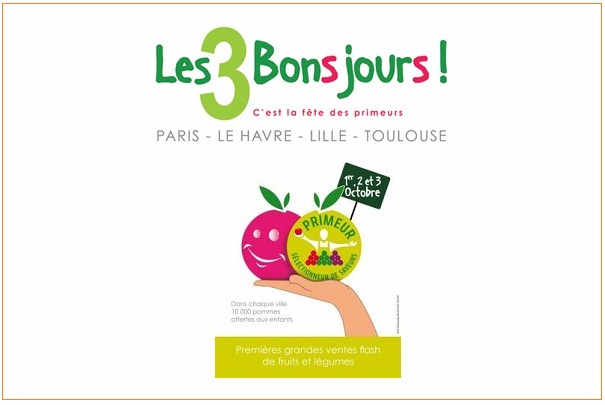 Du vendredi 1er au dimanche 3 octobre 2010 se déroulera l’opération « Les 3 Bons Jours ». Organisée à l’initiative de l’UNFD (Union nationale des syndicats de détaillants en fruits, légumes et primeurs), cet événement donne l’occasion aux primeurs et aux maraîchers de procéder, tout au long de la journée, à des ventes flashs de leurs productions de fruits et légumes de saison afin de redynamiser le secteur. Les consommateurs pourront alors profiter de prix attractifs. Et les enfants se verront remettre gratuitement des pommes s’ils viennent accompagnés de leurs parents.