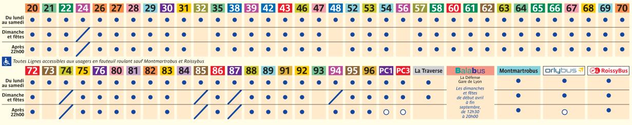 Paris et sa proche banlieue sont desservis par un réseau de 59 lignes de bus ce qui permet de pouvoir se déplacer dans la capitale sans avoir à forcément emprunter le métro ou le RER.