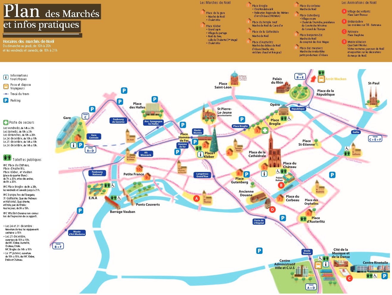 Plan des marchés de Noël à Strasbourg (cliquer sur le plan pour l’agrandir) :