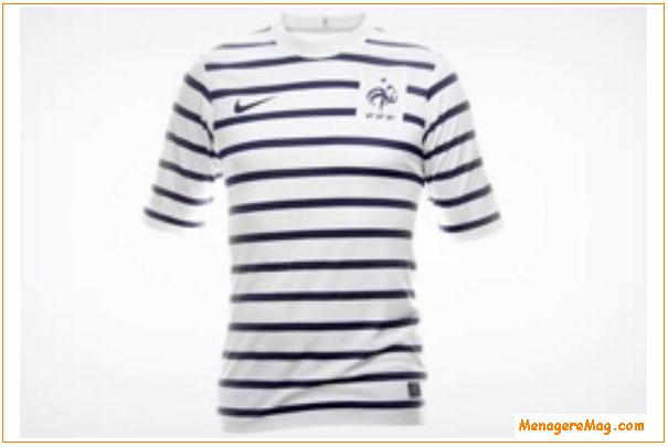 L’équipe de France de football pourra s’enorgueillir d’un nouveau maillot Nike pour les matches disputés à l’extérieur. En effet, l’équipementier Nike (désormais partenaire de la FFF) a dévoilé ce lundi 7 mars 2011 la marinière que les Bleus porteront dès le 25 mars prochain au Luxembourg.
