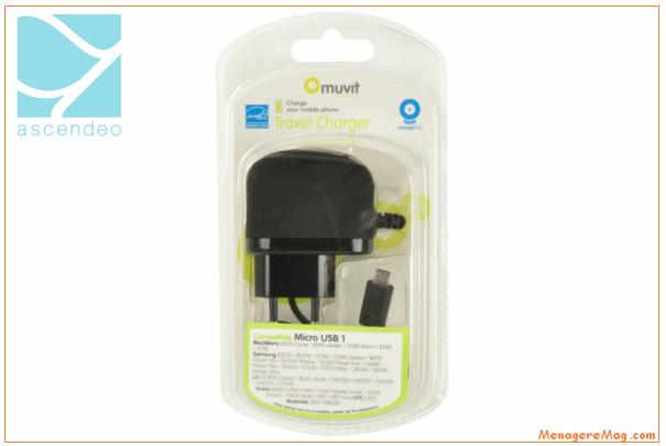 La société Ascendeo France procède au rappel volontaire et au retrait à la vente de chargeurs secteur de voyage Micro USB 1 de la marque Muvit.