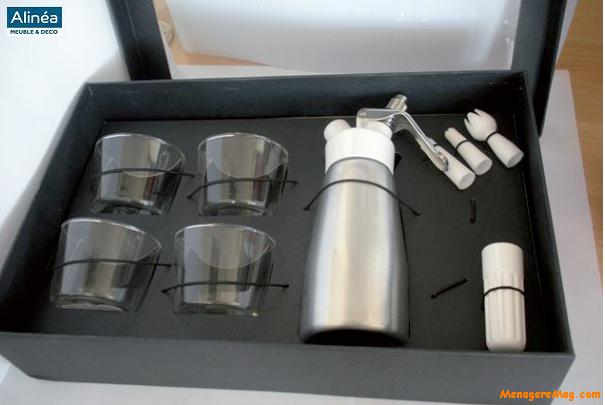 Rappel de coffrets avec siphons à chantilly et verrines vendus dans les magasins Alinéa