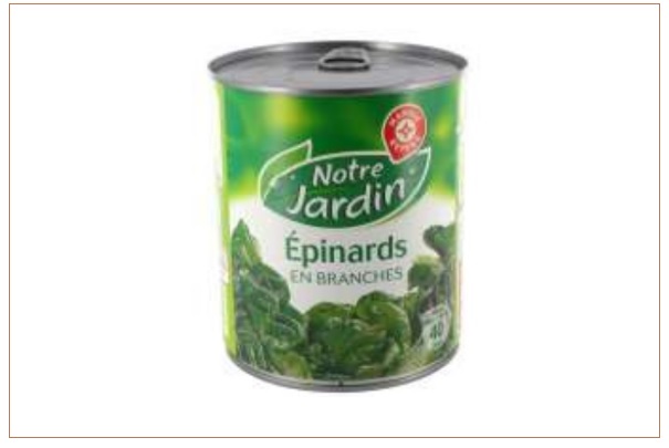 Rappel de conserves d’Epinards en branches Notre Jardin vendus ches Leclerc