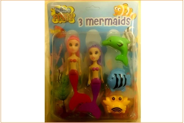 Les Autorités douanières, par l’intermédiaire du système européen d’alerte Rapex, procèdent au rappel d’un lot de sets de jouets en plastique 3 Mermaids composés de 2 sirènes et de 3 poissons de la marque Hello Fishy.