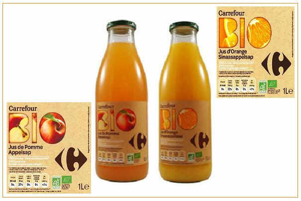 Rappel de jus d’orange et de jus de pomme bio de marque Carrefour