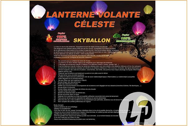 Les Autorités douanières, par l’intermédiaire du système européen d’alerte Rapex, procèdent au rappel de lanternes volantes célestes en papier 100 % ignifugé (fournies avec un brûleur) de la marque LP Divertissement.