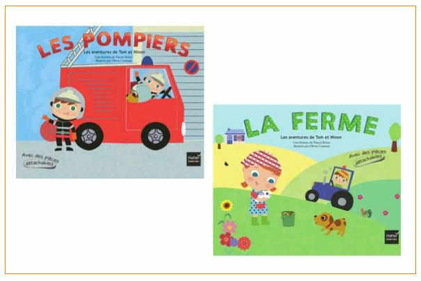 - Les aventures de Tom et Ninon : Les pompiers – référence : 310311 – code EAN : 978-2-218-95851-9.