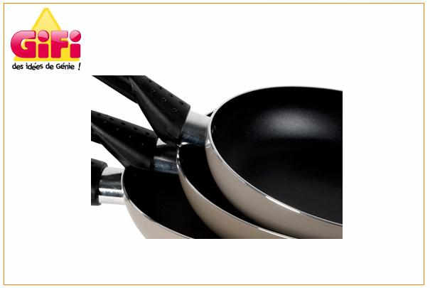 Rappel de lots de 3 poêles en aluminium vendus dans les magasins Gifi