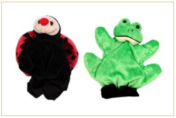 Rappel de marionnettes grenouilles et coccinelles vendues chez Nature & Découverte