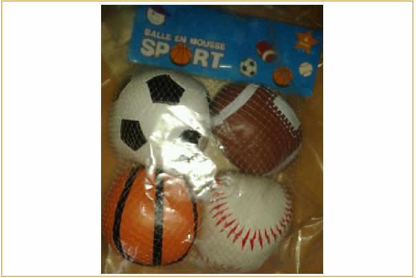 Les Autorités douanières, par l’intermédiaire du système européen d’alerte Rapex, procèdent au rappel de lots de 4 balles en caoutchouc et mousse Sport en provenance de Chine.