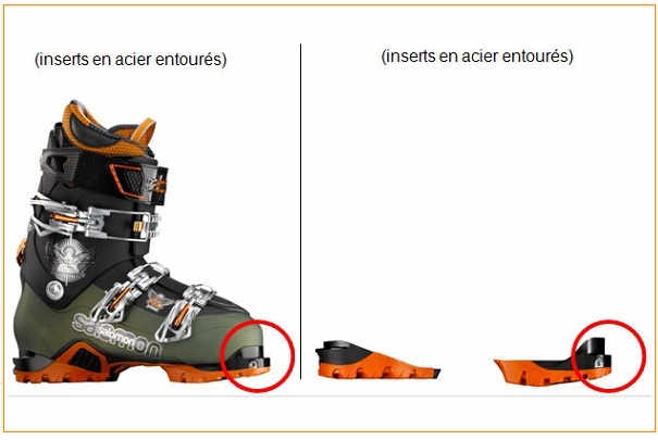 En effet, la butée avant peut éventuellement ne pas assurer un maintien parfait de la chaussure de ski dans certaines fixations de randonnée dites « low tech » pouvant de ce fait, entraîner un risque de chute.