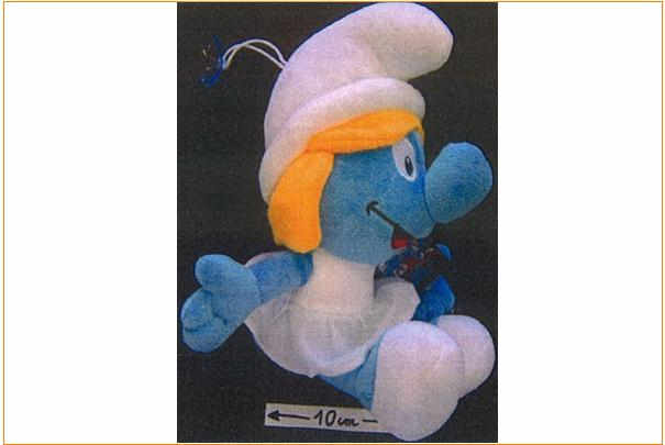 Les Autorités douanières, par l’intermédiaire du système européen d’alerte Rapex, procèdent au rappel de peluches en forme de Schtroumpfette munies d’un cordon et d’une ventouse pour l’accrocher.