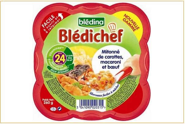 Bledina procède au rappel et au retrait à la vente de barquettes de 260 g Blédichef Mitonné de carottes, macaroni et boeuf destinées aux bébés dès 24 mois.
