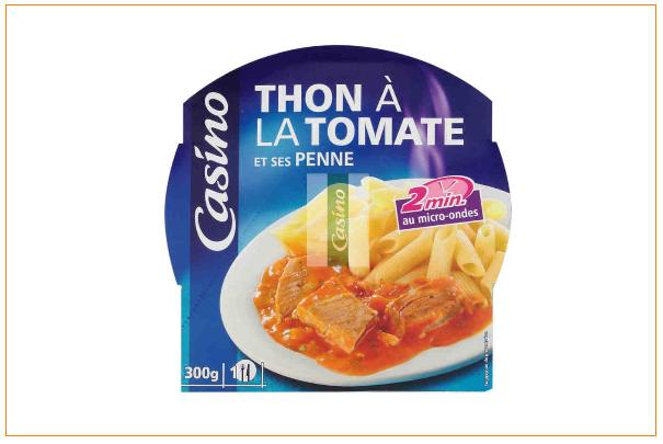 Les magasins Casino procèdent au rappel et au retrait à la vente de plats cuisinés Thon à la tomate et ses pennes de la marque Casino commercialisés en barquette individuelle de 300 g.