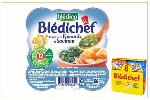 Bledina procède au rappel e au retrait à la vente de purées aux épinards et au saumon Blédichef en barquettes plastique de 230 g commercialisées à l’unité ou en lots de huit de saveurs différentes.