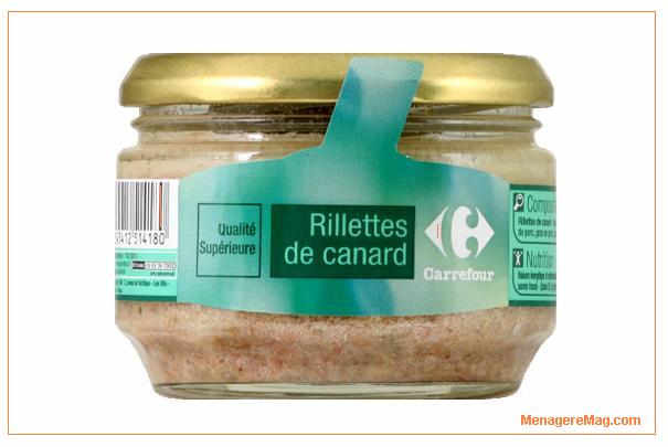 Les magasins Carrefour procèdent au rappel de rillettes de canard 180 g de qualité supérieure vendues en pots en verre.