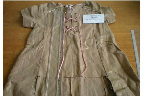 Il subsiste en effet un risque de strangulation et de blessures pouvant résulter d’objets fixes qui pourraient se prendre dans les lacets en cuir qui passent dans les oeillets métalliques sur le devant de la robe.