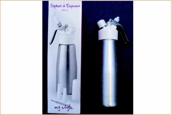 La société I2C procède au rappel des siphons à espumas 500 ml My Style des marques Culinarion et Ambiances et Styles. Il subsiste en effet une erreur dans la notice d’utilisation qui indique l’emploi de deux cartouches au lieu d’une seule ce qui peut entraîner le détachement de la tête du siphon à cause de la surpression. La température de 70 ° comme stipulée sur l’emballage peut également provoquer une surpression.
