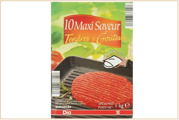Les magasins Dia situés dans tout le nord-ouest de la France et en Ile-de-France procèdent au rappel et au retrait à la vente de steaks hachés surgelés Maxi Saveur (boîte carton de 1 kg) de marque Dia commercialisés entre le 4 et le 23 octobre 2013.