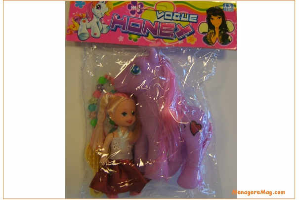 Les Autorités douanières, par l’intermédiaire du système européen d’alerte Rapex, procèdent au rappel et au retrait à la vente d’ensembles de poneys My Vogue Honey composés d’un petit poney violet, d’une poupée de 12 cm de hauteur, d’une brosse et d’un bracelet.