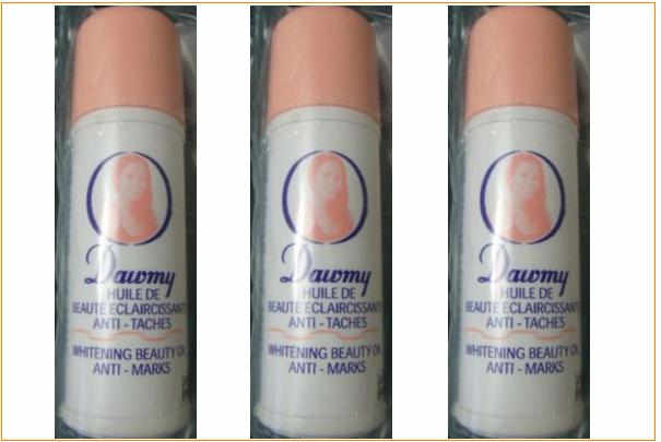 Les Autorités procèdent au retrait à la vente d’huiles de beauté éclaircissant pour la peau de la marque DAWMY, en provenance de Côte d’Ivoire. Il subsiste en effet un risque chimique pour la peau car ces produits contiennent du clobétasol propionate, substance interdite en France dans les produits cosmétiques.