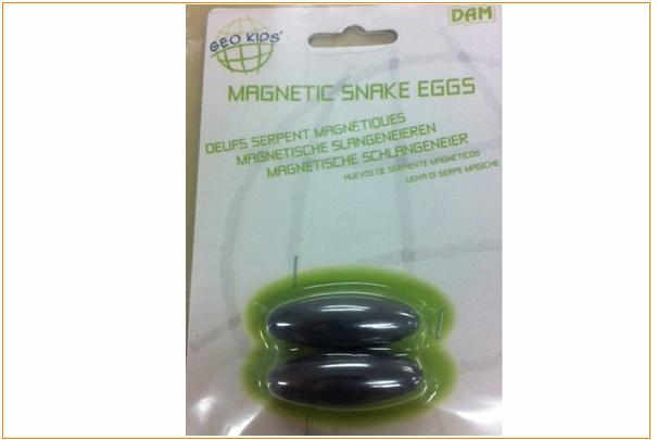 Les Autorités douanières, par l’intermédiaire du système européen d’alerte Rapex, procèdent au rappel d’oeufs de serpent magnétiques de la marque Géo Kids/Dam en provenance de Belgique.