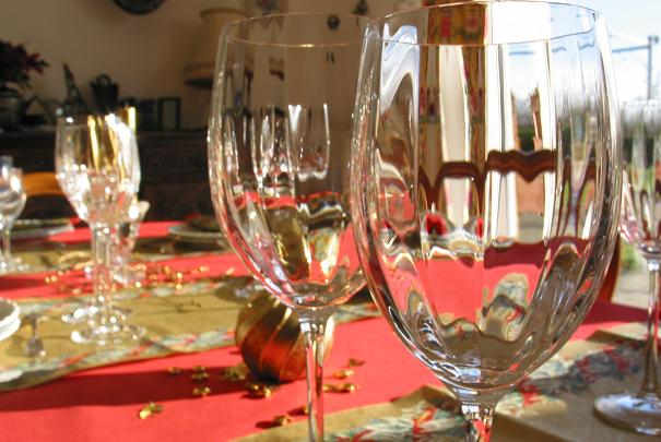 - disposer quelques petites décorations de table supplémentaires : paillettes ou étoiles dorées ou argentées, strass, bijoux de verre, pétales de rose, plumes, anges…