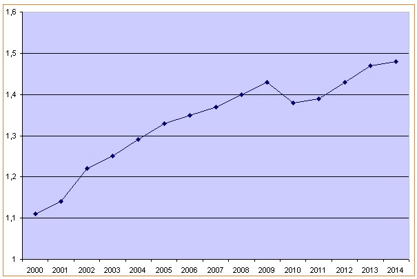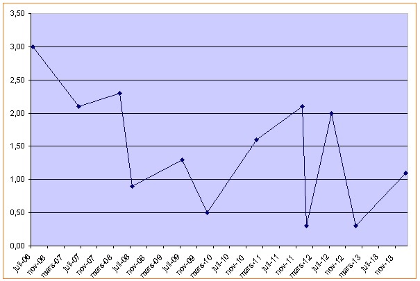 En l’espace de 30 ans (1983 à 2013), le timbre poste ordinaire (affranchissement d’une lettre de moins de 20 [...]