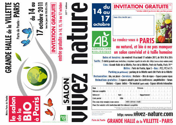Télécharger ici des invitations gratuites pour le salon bio Vivez Nature 2011.