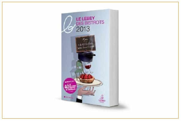 Le guide Lebey des bistrots 2013 répertorie cette année 400 bistrots de Paris et 40 de Bruxelles sélectionnés pour leurs menus rapides d’un bon rapport qualité/prix. Une sélection de vins vient compléter cet ouvrage.