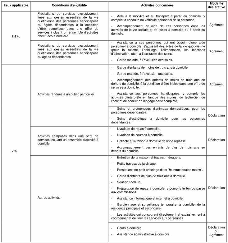 1. Taux de TVA réduite pour les services à la personne (cliquer sur l’image pour l’agrandir) :