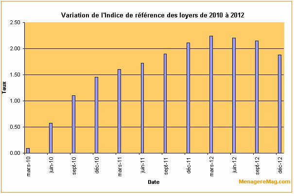 Variation de l’indice de référence des loyers de 2010 à fin 2012