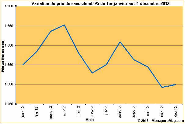 Evolution du prix du sans plomb 95 en 2012 :