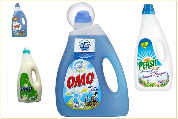 Ainsi, les bidons standards de 5 litres des lessives Omo, Persil et Skip disparaîtront petit à petit des rayons des grandes et moyennes surfaces pour être remplacés par des bidons de 3 litres (les bidons de 3 litres, par des 2 litres). Le nombre de lavages reste identique, la dose de lessive nécessaire au lavage du linge en machine étant moindre (75 ml au lieu de 110 ml).